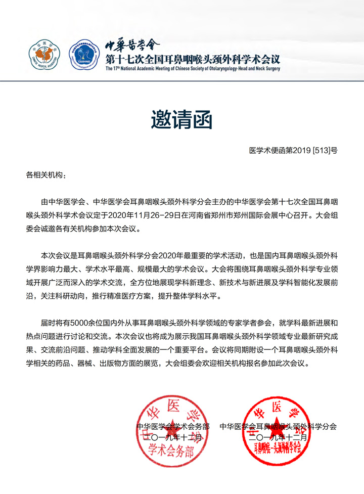 2020.11月河南第十七次全國(guó)耳鼻咽喉頭頸外科學(xué)術(shù)會(huì)議-企業(yè)參會(huì)通知